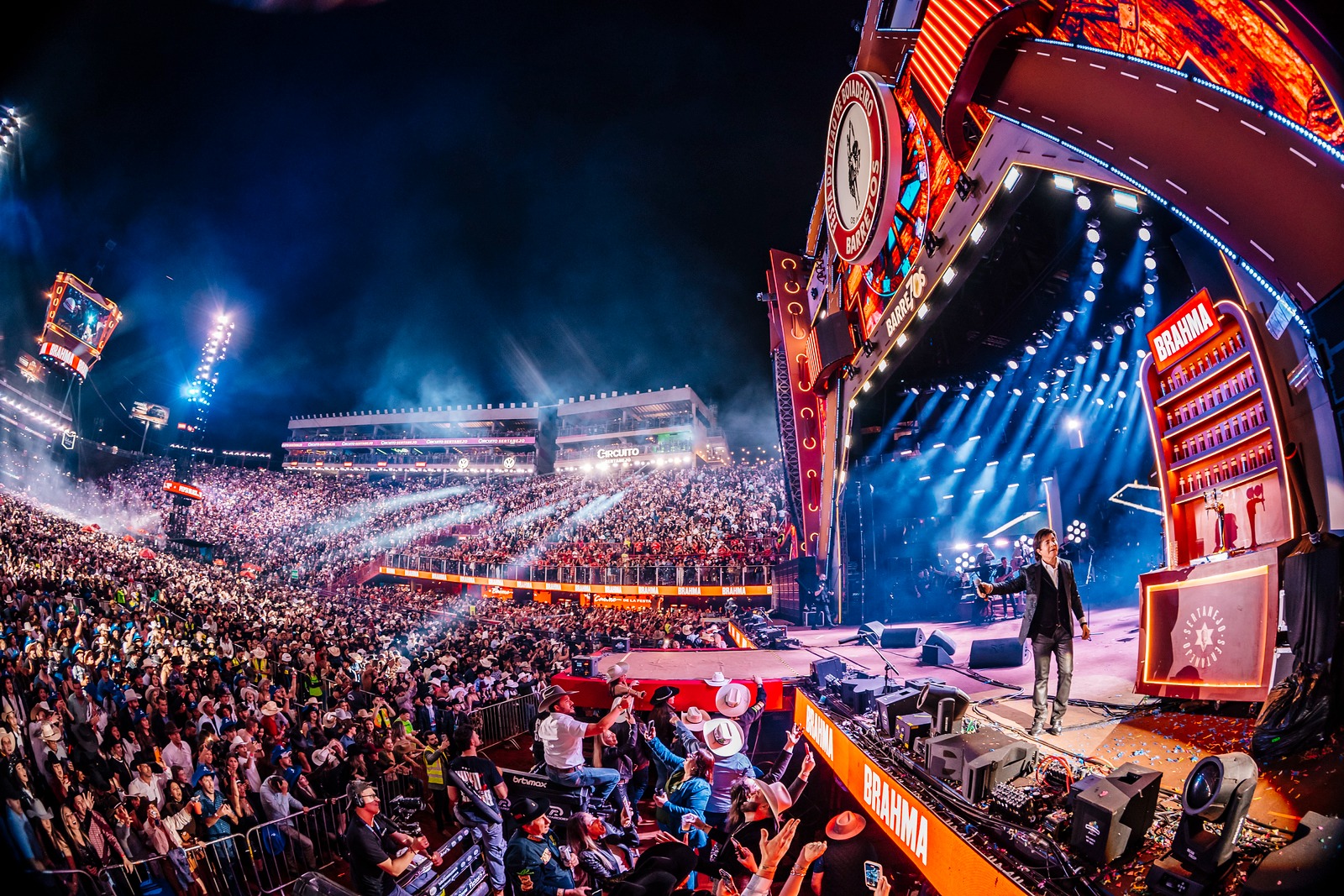O show de Chitãozinho & Xororó, parte da turnê “Uma História de Sucesso”, lotou a arena do maior rodeio da América Latina e foi o primeiro da noite. A apresentação revisitou os grandes sucessos dos irmãos com mais de 50 anos de carreira e levou um repertório clássico, em nova roupagem, trazendo a influência do pop, rock, folk e country.